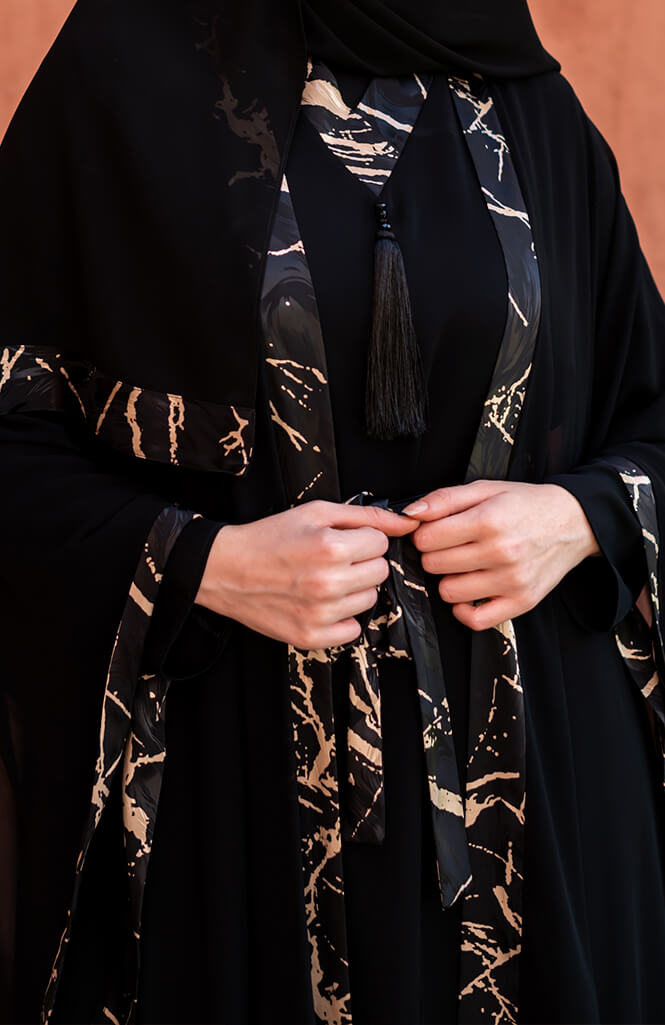 عباية سوداء شيفون بشكل ملحفة من مصنع فيفر هي قطعة أساسية في خزانة كل امرأة محتشمة وأنيقة. تتميز هذه العباية بتصميمها الأنيق والأنثوي، حيث تأتي بقماش الشيفون الخفيف والناعم الذي يضفي عليها مظهراً راقياً. كما تتميز العباية بقصتها الواسعة التي تجعلها مريحة للارتداء طوال اليوم. احصلي على هذه العباية الجميلة وأضفي لمسة من الأناقة والجمال إلى إطلالتك اليومية.